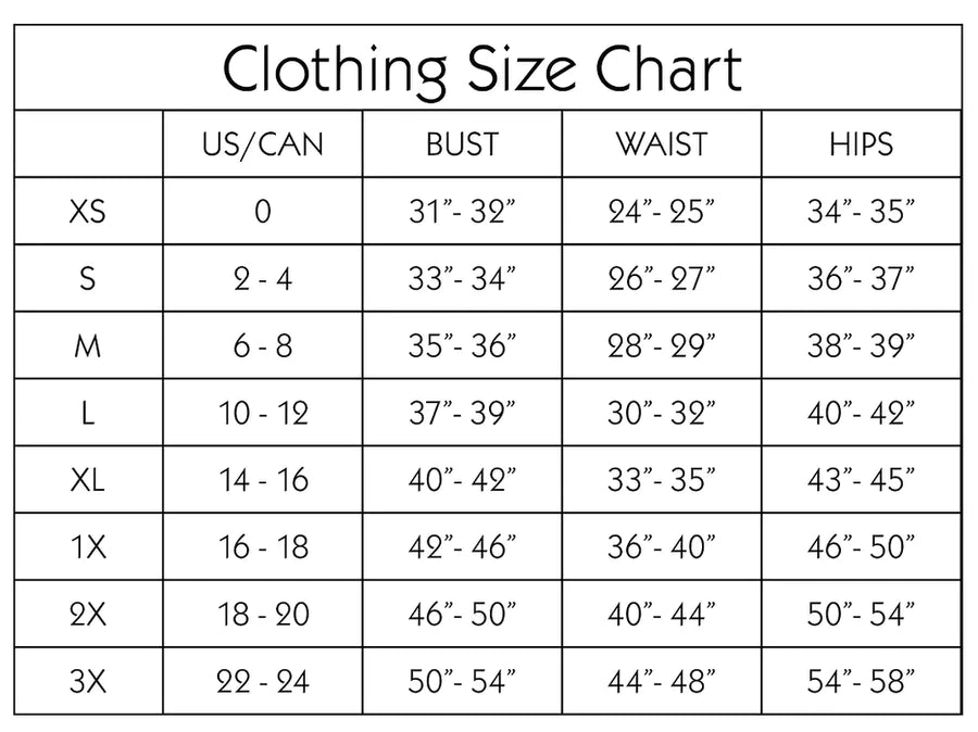 Refer to this size chart in order to find your size. Our team measures every single item. Any products that fall outside of this chart will have notes on the listing recommending if you should size up or down.